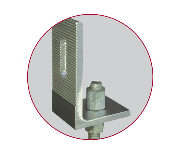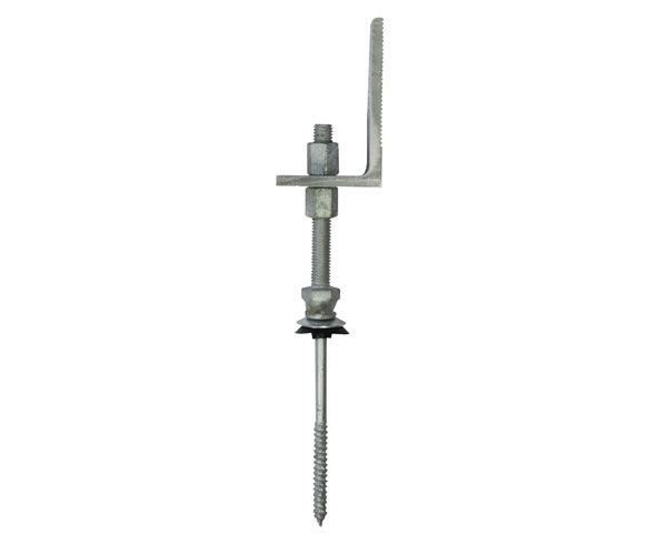 Kit para parafuso telheiro a ser fixado em caibro de madeira. Usado em conjunto com perfil 35x58mm com fixação lateral. Inclui parafuso especial e 2 porcas M10 zincados a fogo, 1 arruela de vedação e 1 cantoneira em alumínio anodizado.