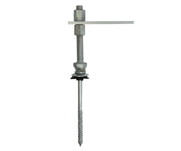 KIT com parafuso telheiro a ser ficado em caibro de madeira. Inclui parafuso especial zincado a fogo, 2 porcas M10 zincadas a fogo, 1 arruela de vedação e 1 placa adaptadora em: